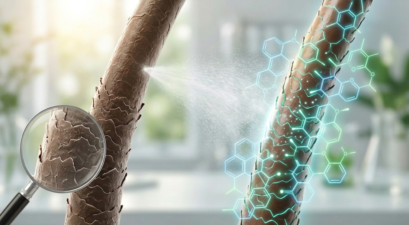 Most hair care products rely on a "cosmetic mask" approach. They use non-polar silicones (like Dimethicone) to coat the hair in a plastic-like film. While this provides instant shine, it is hydrophobic, meaning it eventually blocks real water from entering the hair shaft, leading to "chronic dehydration."Our organic spray utilizes Biomimetic Hydration. This means the formula mimics the hair’s natural lipid layer (the 18-MEA layer) which modern environment, heat, and chemicals strip away. By using polar plant lipids and aqueous botanicals, the spray doesn't just sit on top of the hair—it integrates with the hair’s internal structure (the Cortex) to restore elasticity from the inside out.
